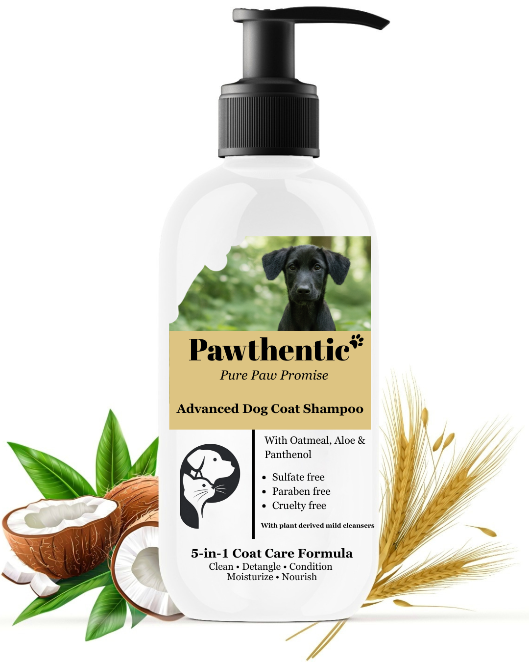 Our premium 5-in-1 formula eliminates the need for multiple products. This advanced shampoo cleans, detangles, conditions, moisturizes, and nourishes your dog's coat in one wash.